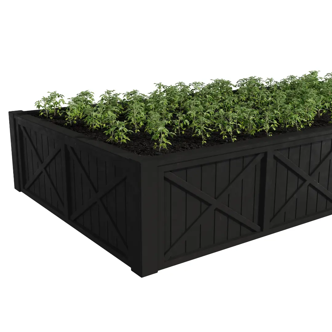 Архитектурная строгость и премиальный контраст. Высокая модульная грядка «АСТРА» в черном цвете разработана специально для современных загородных участков в стиле хай-тек и минимализм. Глубокий, матовый черный цвет задает пространству строгую геометрию и создает невероятно эффектный визуальный контраст с сочной зеленью выращиваемых культур. Темный полимер-композит с глубокой УФ-защитой не выгорает на солнце, а массивный фасадный барельеф подчеркивает статусность и монументальность вашего ландшафтного проекта.