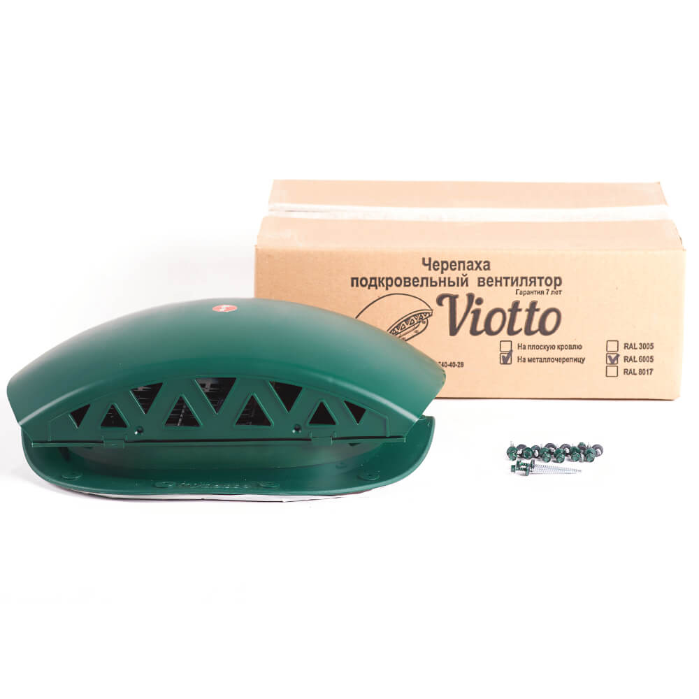 Подкровельный вентилятор "Черепаха" Viotto RAL 6005 Зеленый Мох для кровли из металлочерепицы в Пензе