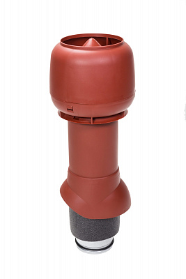 Труба теплоизолирована для предотвращения образования конденсата в трубе. Внутренняя труба изготовлена из оцинкованной стали. Длина внутренней трубы позволяет вставить ее в подводимый воздуховод на длину 300 мм. Это облегчает вертикальный монтаж в тесных чердачных помещениях и делает конструкцию более прочной. Нижний край внутренней трубы имеет резиновый уплотнитель, герметизирующий соединение трубы и воздуховода. Колпак вентиляционного выхода защищает от попадания осадков и грязи в канал. Проходной элемент для монтажа подбирается по типу кровельного материала.