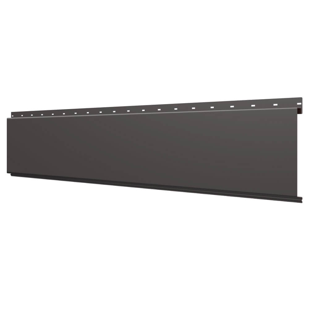 Линеарная потолочно-стеновая панель ГЛАДКАЯ цвет RAL8019 Темный Шоколад применяется в качестве софитов для подшивы крыши, наружной и внутренней отделки потолков, стен, фронтонов фасада дома в Пензе.