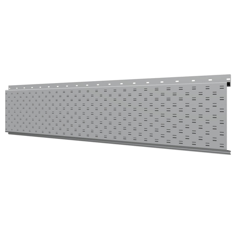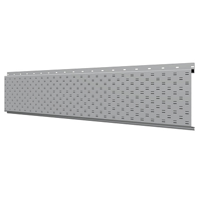 Линеарная потолочно-стеновая панель с ПЕРФОРАЦИЕЙ для вентиляции цвет RAL7004 Серый применяется в качестве софитов для подшивы крыши, наружной и внутренней отделки потолков, стен, фронтонов фасада дома в Пензе.