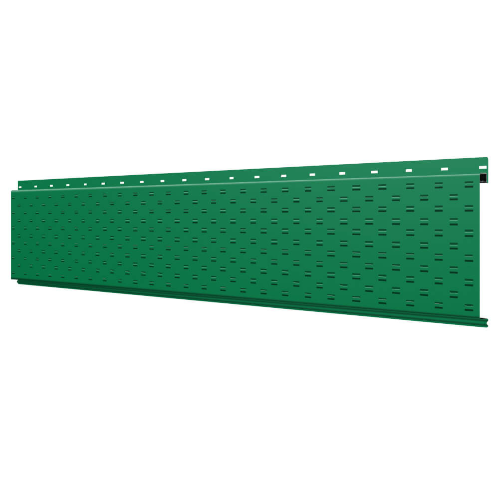 Линеарная потолочно-стеновая панель с ПЕРФОРАЦИЕЙ для вентиляции цвет RAL6029 Зеленая Мята применяется в качестве софитов для подшивы крыши, наружной и внутренней отделки потолков, стен, фронтонов фасада дома в Пензе.