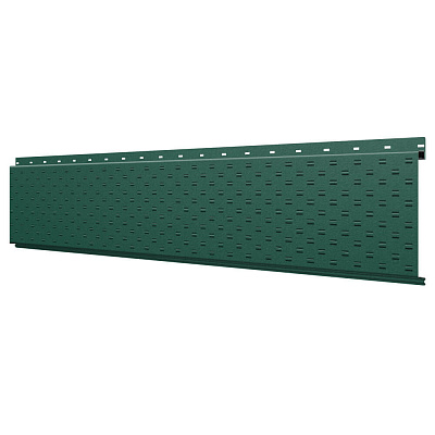 Линеарная потолочно-стеновая панель с ПЕРФОРАЦИЕЙ для вентиляции цвет RAL6005 Зеленый Мох Стальной Бархат применяется в качестве софитов для подшивы крыши, наружной и внутренней отделки потолков, стен, фронтонов фасада дома в Пензе.