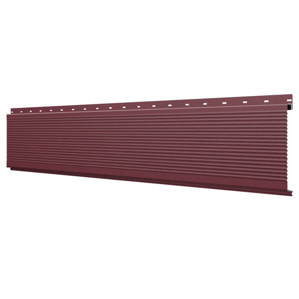 Линеарная потолочно-стеновая панель РИФЛЕНАЯ усиленная цвет RAL3005 Красное Вино Стальной Бархат применяется в качестве софитов для подшивы крыши, наружной и внутренней отделки потолков, стен, фронтонов фасада дома в Пензе.