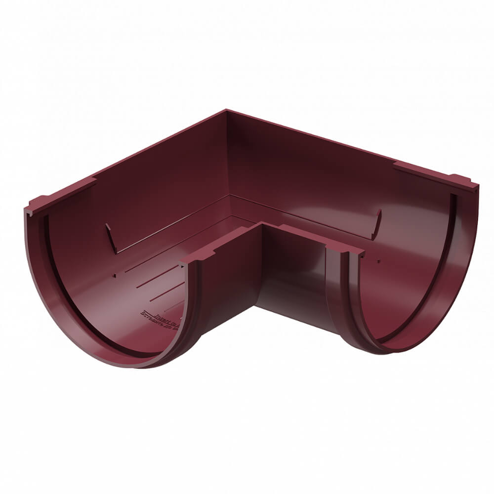 Угловой элемент желоба универсальный ДЕКЕ STANDARD d120мм 90 градусов цвет RAL 3005 Красный в Пензе. Угловые элементы устанавливаются как на внешних, так и на внутренних углах кровли и предназначены для соединения желобов.