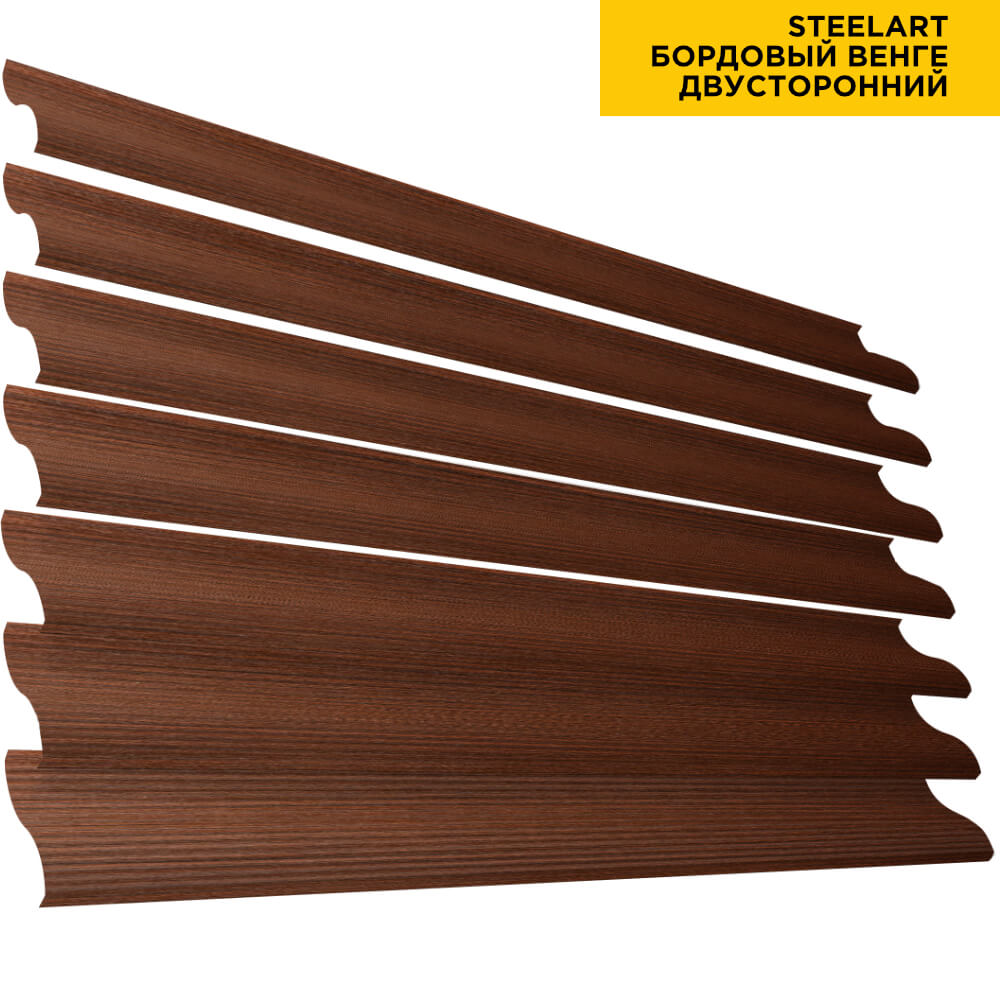 Ламель Еврожалюзи металлическая S-образная, цвет под дерево Бордовый Венге SteelArt Россия двухстороннее покрытие, длина любая кратно 1см под заказ - для забора-жалюзи, беседки, перголы в Пензе.