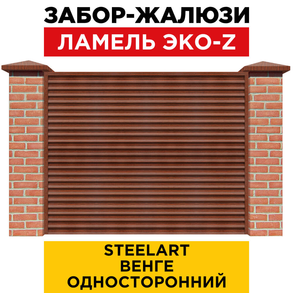 Ламель металлическая Z-образная простая ЭКО-Z, цвет под дерево Венге SteelArt одностороннее покрытие, длина любая кратно 1см под заказ - для забора-жалюзи, беседки, перголы в Пензе
