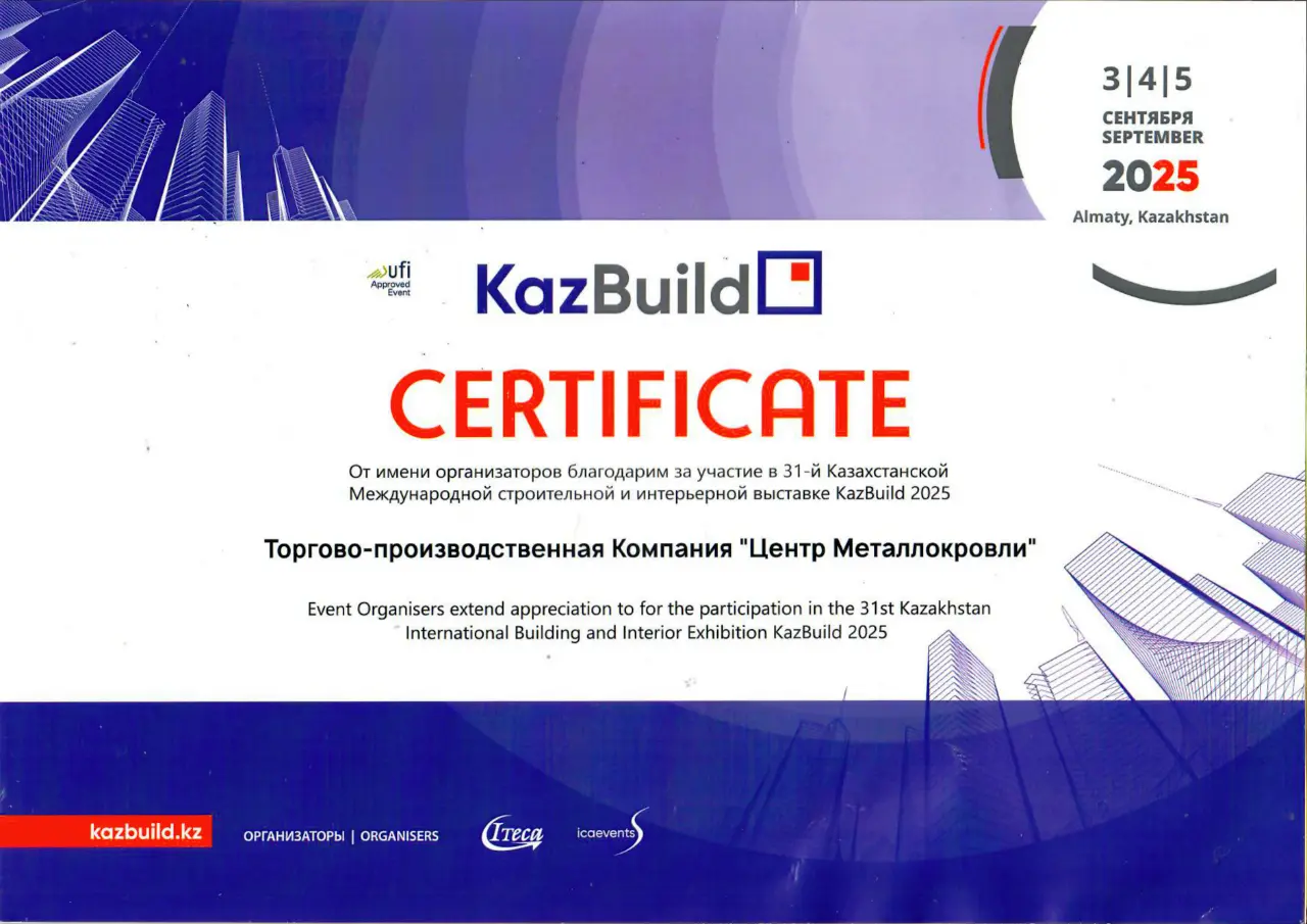 Сертификат участника "Международной строительно-интерьерной выставки MosBuild 2024"